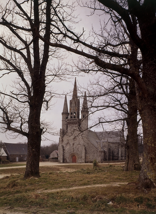 L´étourdissant jubé de 1480, dont la sculpture atteint des sommets de virtuosité, s´inscrit dans la même démarche. Bien qu´il s'agisse d´un ouvrage de menuiserie, ce dernier joue un rôle majeur dans la répartition et la distribution des espaces au point que la question de son emplacement mérite d´être évoquée. A l´entrée du chœur, au Nord, du côté de l´évangile, deux portes du XVe siècle presque superposées qui donnent aujourd´hui l´une sur une chaire à prêcher et l´autre sur une tribune seigneuriale, datables du XVIIe siècle, ouvrent sur un escalier en vis en pierre ménagé dans la pile et dont la cage cylindrique déborde à l´extérieur à l´aisselle du chœur et du bras nord. Il est plus que probable que cet escalier, solidaire du gros-œuvre du XVe siècle, avait été prévu pour desservir la tribune d'un jubé selon une formule que l´on trouvait à Notre-Dame-de-la-Cour à Lantic, à Notre-Dame de Quilinen ou encore à l´église de Locronan. D'autres indices suggèrent que l'emplacement actuel du jubé résulte d'un changement de parti en cours de chantier comme l'indique son montant principal du côté nord qui vient se coller de façon maladroite et inesthétique au milieu de la niche crédence de l´autel de Saint-Sébastien, aménagée dans la pile nord et dont on a brutalement entaillé l´appui. En même temps l'existence du coté de la nef au niveau de la tribune, à son extrémité sud d'une demi-travée destine à racheter la dissymétrie de plan, indubitablement solidaire du reste, montre que le jubé a bien été in fine conçu pour son emplacement actuel et non pour être installé à l'entrée du chœur comme il avait été initialement prévu.