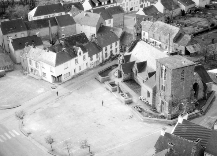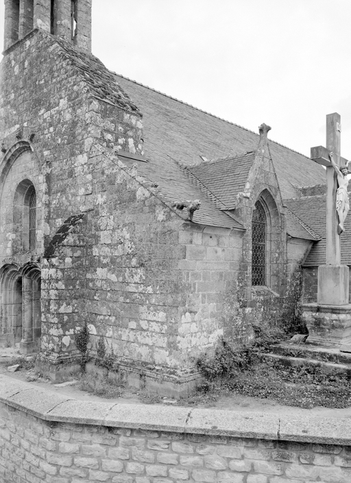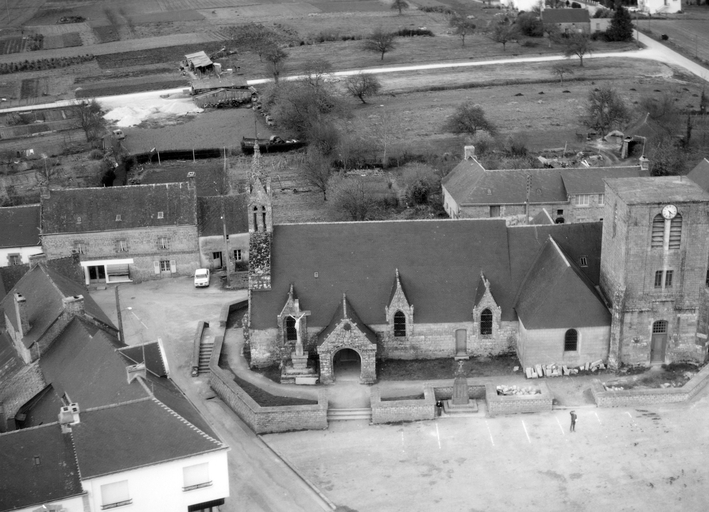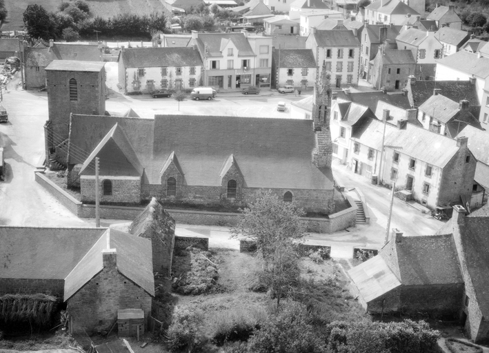 Nef 1ère moitié 16e siècle. Les sablières du porche sud portent l'inscription : " L'AN 1527 FUT REFAICTE CESTE EGLISE POUR LORS RECTEUR M.I. GOUZILLON TRESORIER DE LEON ". Bras de transept reconstruits en 1752. Chevet remanié 18e siècle. Façade ouest et clocher remontés en 1817. Bras sud restauré en 1866. Ossuaire détruit début 20e siècle. Tour construite en 1932. Cimetière déplacé en 1934.