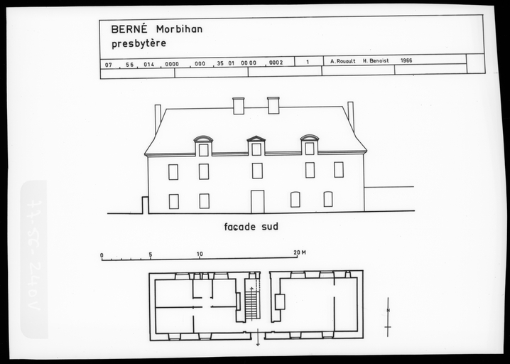 Le presbytère de Berné se rattache à une lignée de presbytères locaux édifiés près de l'église au 17e siècle, grande période de construction de presbytères en Bretagne. Sa masse soulignée d'un toit à croupes et de grandes lucarnes à fronton l'identifie clairement comme maison d'exception dans le village. Les presbytères de Ploerdut ou Inguiniel, plus loin du sanctuaire, adoptent une même silhouette. Cependant celui de Berné a la particularité, autrefois partagée avec Mellionnec, disparu, de communiquer directement avec le "champ des morts". (C. Toscer)