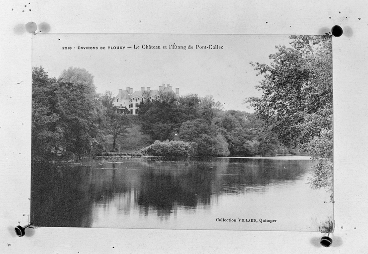 Le château actuel, l'aile occidentale exceptée, est une reconstruction de 1882, due au fils du Comte de Brissac qui avait racheté le château en 1833. Deux constructions antérieures au moins se sont succédées sur une ancienne place forte, siège d'une importance seigneurie, et partiellement détruite par les troupes de Mercoeur en 1591. Si cette enceinte a subsisté jusqu'à une date avancée, il est généralement admis que le logis a été reconstruit au 17e siècle, comme en témoigne le pavillon ouest. Cet important ensemble a été presque entièremenet brûlé en 1796. Au cours des travaux du 19e siècle, la majeure partie du pavillon occidental, flanqué de la tourelle carrée au sud-est, a été conservée, les parties hautes, lucarnes comprises, ont été refaites. En même temps, un bâtiment cubique à deux niveaux a été ajouté en avant du pavillon ouest. Vendu autour de 1956 à une communauté de Dominicaines qui y dirige un orphelinat, l'ensemble a été augmenté en 1966 par une chapelle et un cloître, la chapelle remployant des matériaux de la chapelle Sainte-Anne de Pluméliau. (E. Laurenceau)