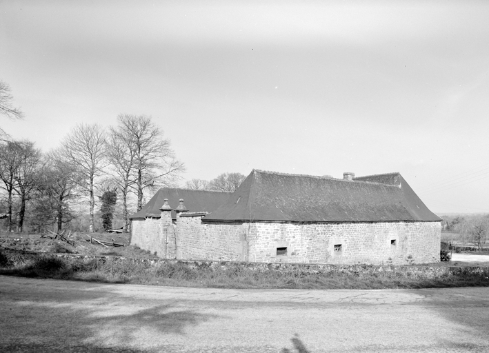 Construit en moellon régulier de granite, l'édifice adopte un plan en U fermé au sud par un mur d'enclos avec portail axial limité par deux piliers, mur d'enclos auquel s'adosse deux dépendances (soue, crèche ?) couvertes en appentis.