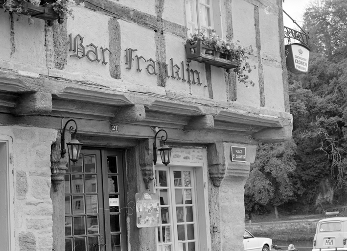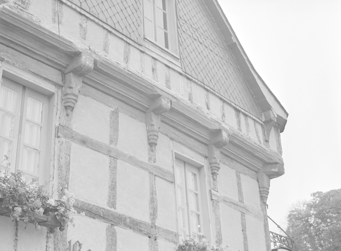 Typologiesmaison d'angle à 2 façades de bois ; deux murs pignons en façade ; encorbellement ; surcroît ; upper cruck