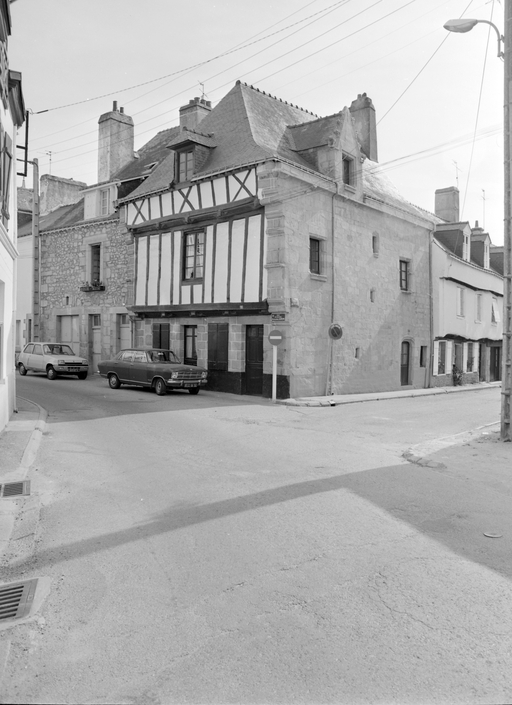 Typologiesmaison d'angle à 1 façade de pierre ; mur pignon en façade principale ; 2 encorbellements ; surcroît