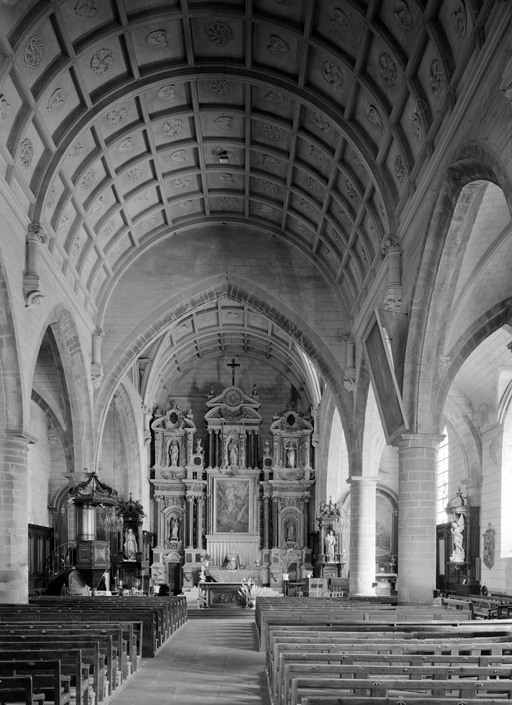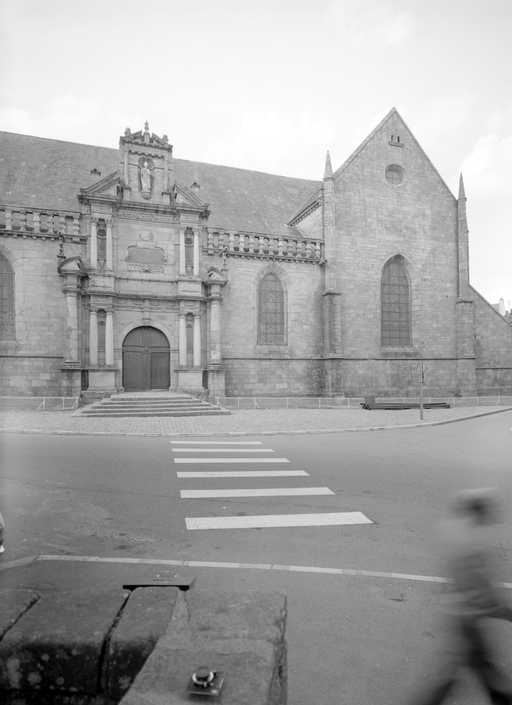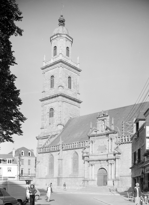 Début des travaux en 1623 sur les plans de Gilles Monsay architecte à Port-Louis (56) ; consécration en 1641 ; porte la date 1636 sur les trois pignons ; clocher achevé en 1663 ; abattu et reconstruit en 1832.