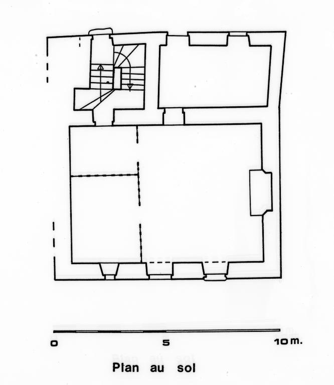 Cargibon (Pluherlin) : maison à logis sur étable ; au rez-de-chaussée, pièce sans cheminée, à usage actuel d’étable ; dans l’angle, escalier en vis desservant l’étage carré à usage de logis (fenêtre en façade, cheminée).