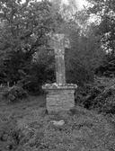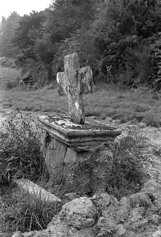 La croix est plantée dans la dalle de plan rectangulaire, qui couronne le soubassement ou dans un petit socle. Ce type est nettement dominant. Les croix de cimetière en font partie, mais présentent quelques caractères différents : présence d’emmarchement, dimensions généralement plus importantes, décor plus abondant.
