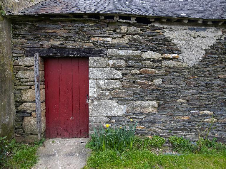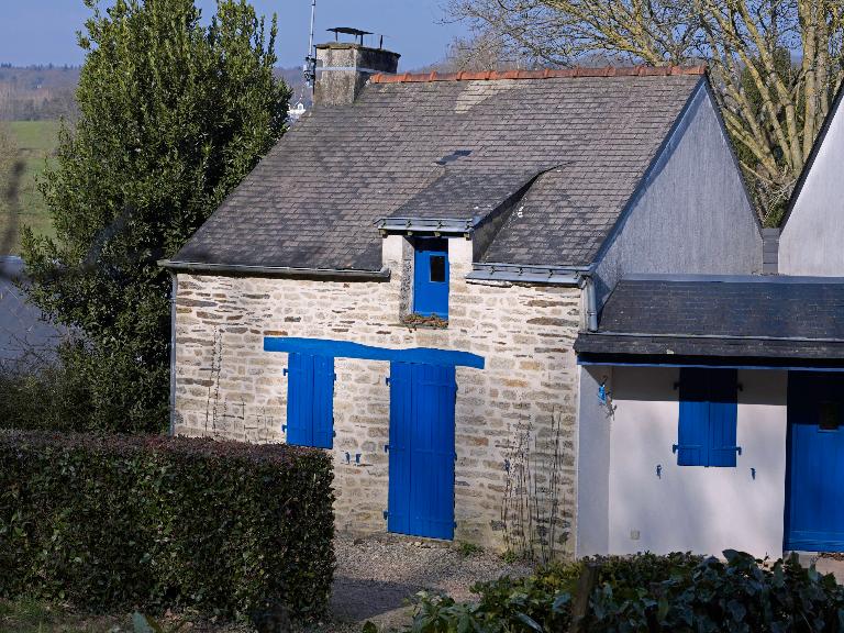 Les matériaux utilisés sur la commune sont essentiellement le granite et le schiste. Les constructions en schiste sont en moellons avec des baies en pierre de taille de granite dont la mise en œuvre varie selon des critères chronologiques. Parfois des blocs de cristaux de quartz, dits pierres de foudre (le quartz chasserait la foudre), sont insérés dans la maçonnerie des édifices (Le Gachot, La Ville Boury, Les Bois). Le schiste connaît de multiples utilisations : étagères et éviers muraux, appuis de fenêtres, revêtements de marche, clôtures et cloisons. Quelques fermes ont gardé des vestiges de ces cloisons en palis de schiste (Carlevaux, La Ville Neuve), mais très rares sont celles à les avoir conservé entières (Brohéac, Le Jonio, Carguillotin, voir ces dossiers). Trois fermes gardent des cadrans solaires anciens de qualité (Coët-Daly, Carade). L'un, situé dans un hameau proche du bourg et daté 1822, est orné de plusieurs scènes probablement religieux, peut-être la légende de saint Hubert (scène de chasse). Si la plupart des lignolets anciens ont disparu, beaucoup d'autres ont fait leur apparition lors de restaurations récentes, tels ceux du moulin du Bragou et de Carnoguin. La aussi, il est intéressant de signaler cette pratique ancienne revenue à la mode.