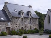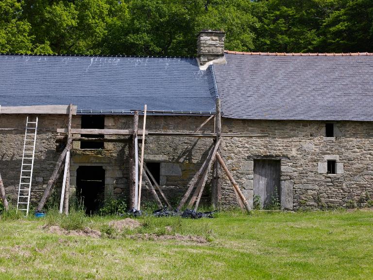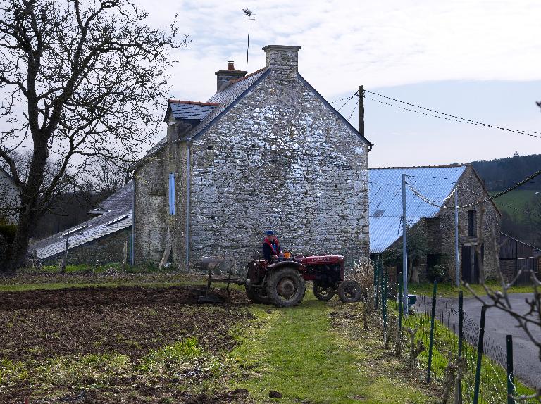L´architecture rurale représente la part la plus importante des édifices rencontrés. Elle se caractérise par peu de réalisations antérieures aux 17e et 18e siècles mais connaît, comme le bourg et certains hameaux, une période de renouveau intense à partir de 1860, dans le cadre d´un contexte démographique et économique favorable. Les fermes sont agglomérées en hameaux plus ou moins importants mais quelques unes sont isolées (Ville au May, Noméline). Ceci est également le cas des exploitations créées à la fin du 19e siècle sur les landes nouvellement dérichées situées dans le nord de la commune. Dans la plupart des cas rencontrés, les fermes sont organisées en alignement. Au 17e et 18e siècles, le logis est à plan massé et à étage carré (Brohéac, Carlevaux, Le Jonio, Cargibon ...), généralement accompagné d'un logis-étable sans étage, schéma fréquemment rencontré en Bretagne au 16e et 17e siècle (Morbihan, Côtes d'Armor). Une tour d'escalier demi hors-oeuvre (Le Fol...) sur l'élévation postérieure permet d'accéder à l'étage : on remarquera le nombre élevé de ces tours d'escalier.