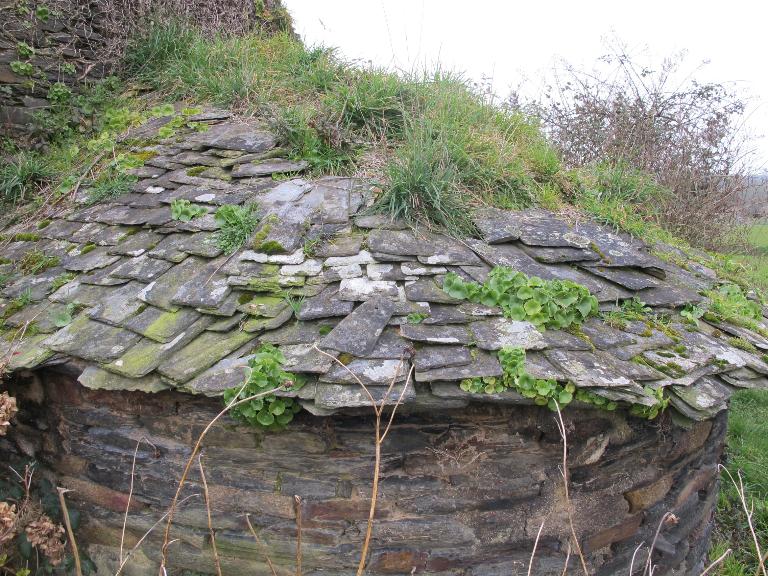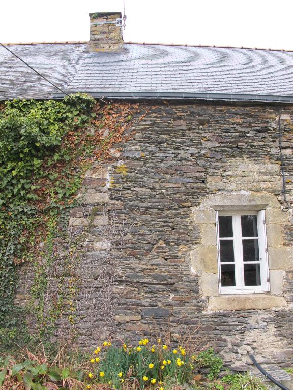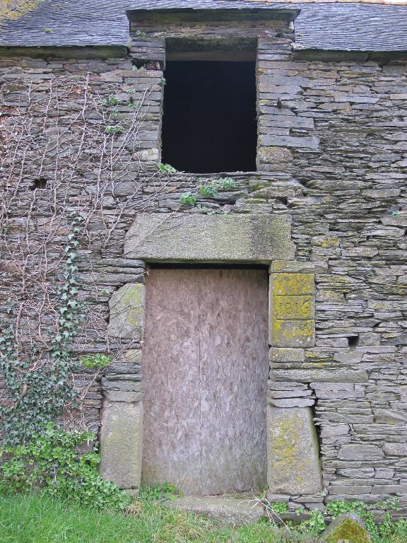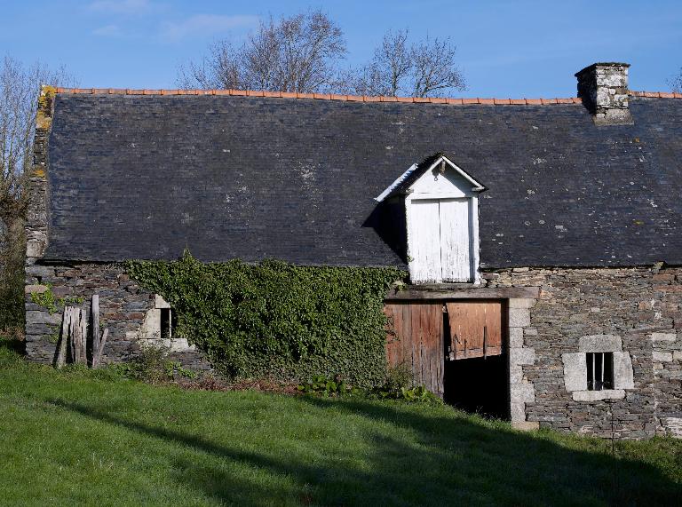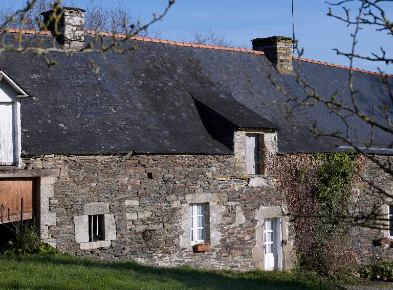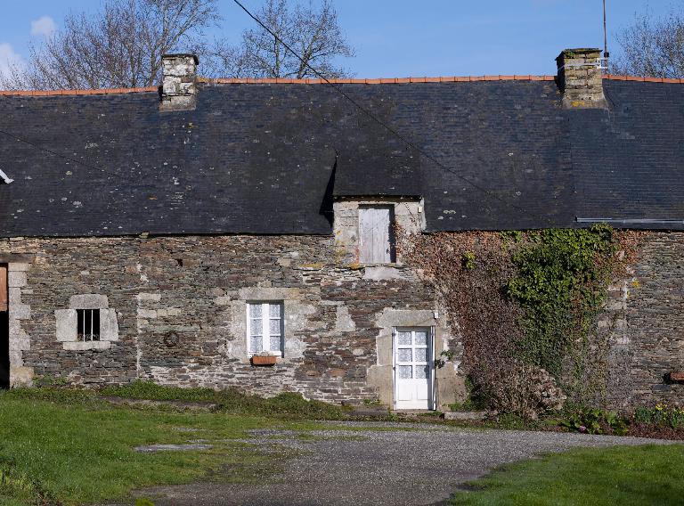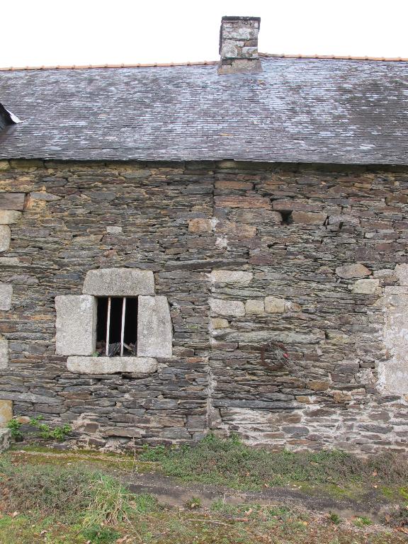 Ferme entièrement construite en moellon de schiste et granite pour les encadrement des ouvertures, dont les agrandissements successifs en particulier au 19e siècle, témoigne d'une certaine prospérité. La mise en œuvre est de qualité malgré quelques remplois et modifications. Quelques éléments anciens en général peu conservés, sont en place : attaches pour animaux en schiste et barrasseaux* .