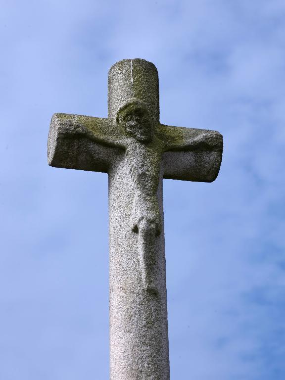 Monument composé d'un emmarchement à deux degrés et d'un soubassement avec table. Le socle est octogonal. La croix à fut rond et bras courts, porte un Christ en croix. Elle est ornée sur la face arrière, d'un cœur et de cinq trous, symbolisant les cinq plaies du Christ.