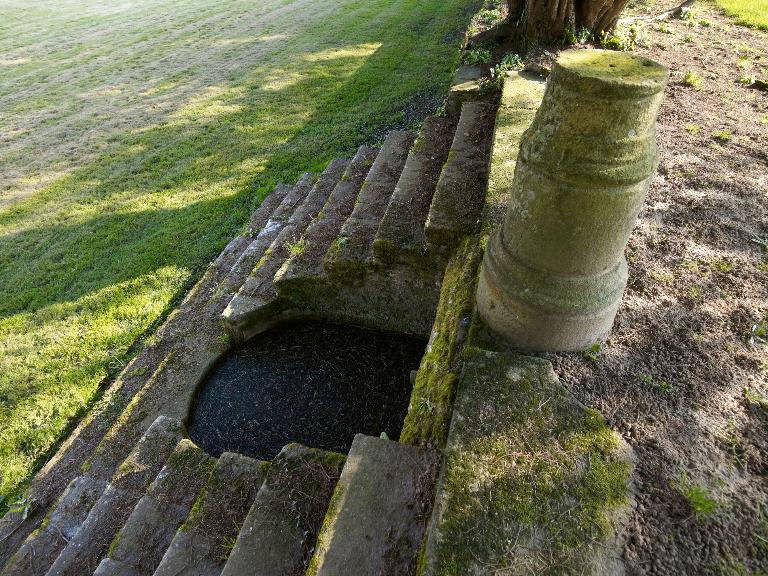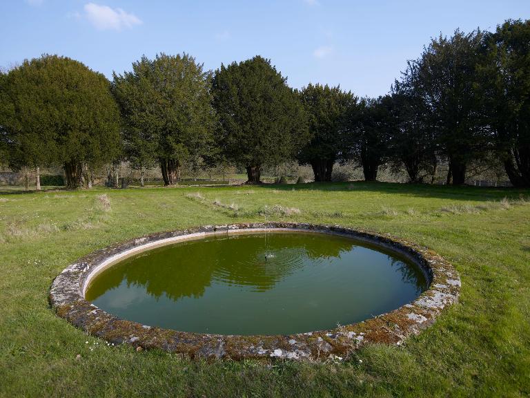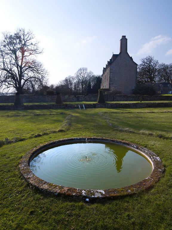 A l'est du château dans l'ancien jardin, le bassin circulaire est bordé de granite.