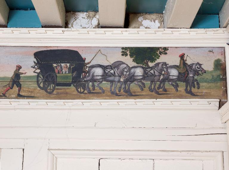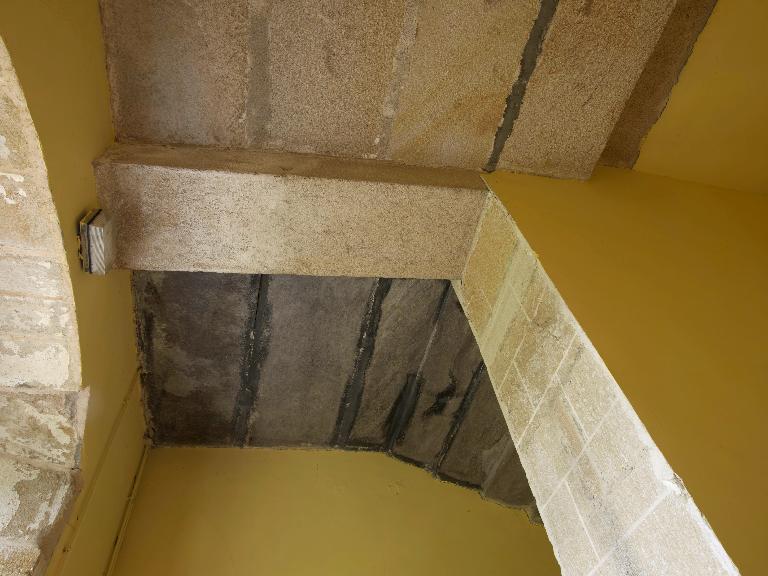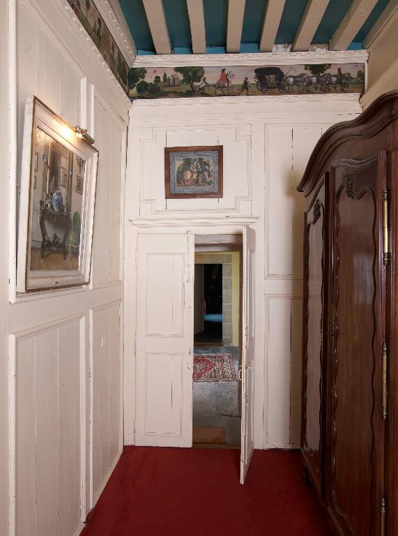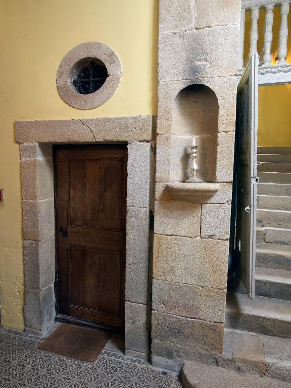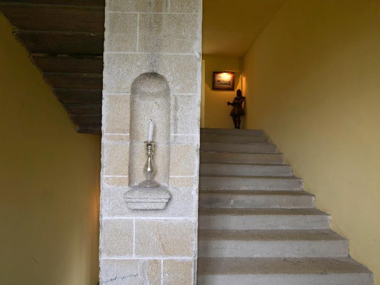 A l'intérieur, l'étage est distribué par un escalier à retours à volées droites sur mur noyau.