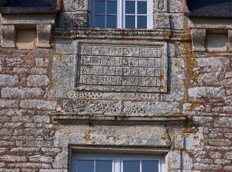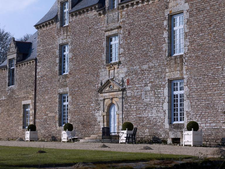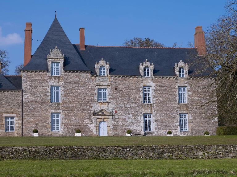 Le château orienté nord-sud, forme un plan en L. La partie centrale avec son décrochement est la partie la plus ancienne. L'élévation nord conserve une porte surmontée d'un blason (représentant les armes des familles Du Bot et Briande de la Chapelle (?) tenu par deux lions ou guépards en haut-relief. Cette élévation comporte également deux oculi en rez-de-chaussée qui éclairent le départ d'escalier menant à une cave, ainsi qu'une lucarne datée 1582. Sur l'élévation sud, la porte principale est mise en valeur par des pilastres surmontés d'un fronton triangulaire. Au dessus, l'inscription : " ALAIN DU BOT BRIANDE DE LA CHAPELLE HANRI DU BOT" confirme l'identité des commanditaires. La lucarne voisine porte quant à elle, la devise du couple : "ce qui me plaist, m'ennuie", encadrée des initiales de leurs prénoms, A et B. Dans le pignon est, des pierres d'attente et quelques ouvertures bouchées témoignent du projet d'extension d'un pavillon identique à celui de l'ouest, projet non réalisé. L'élévation ouest de l'extension ouest, plus basse, montre plusieurs ouvertures bouchées.