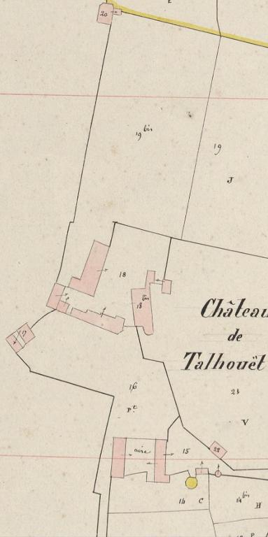 Situé à l'orée du bois du Talhouët, le domaine du même nom se compose d'un grand logis entouré de ses dépendances (grange, étables, fournil), d'une citerne à eau, d'une chapelle et de sa sacristie, d'anciens murs de clôtures et de jardins avec bassin.