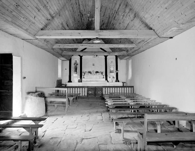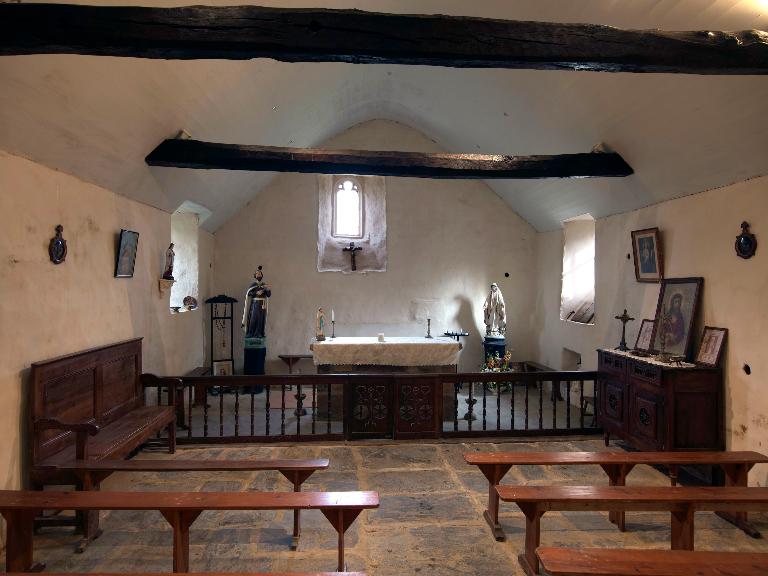 Chapelle dont la petite taille des ouvertures correspond à l'ancienneté de la construction. Par ailleurs, l'édifice conserve des éléments anciens intéressants, tels les armoiries des commanditaires (traités dans des écus très triangulaires) ainsi que des vases acoustiques. L'absence de porte à l'ouest est étonnante. La présence de l'enduit nuit à la qualité de la construction.