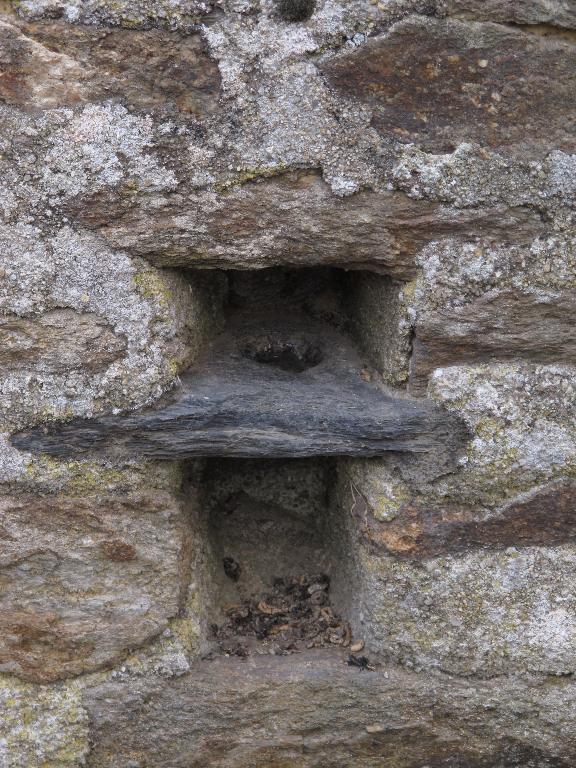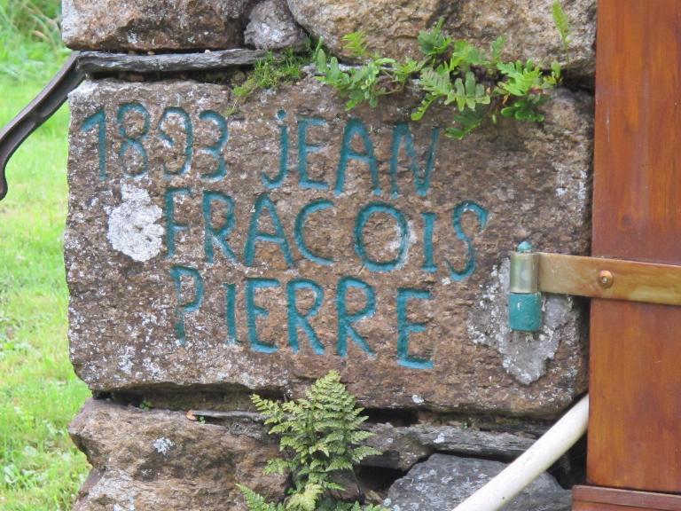 Pour le gros-oeuvre, le matériau employé reste celui issu du sous-sol immédiat, un granite de qualité médiocre qui n’a pas généré, même dans les périodes anciennes, de construction en pierre de taille ou en moellon réglé. Le moellon est donc seul utilisé. On note l’inclusion de gros blocs de quartz à la base des maçonneries, dont la tradition rapporte qu’il s’agit d’une protection contre la foudre. Le quartz se trouve aussi dans les champs sous forme de blocs de cristaux, et il est inclus de manière ostensible dans les façades comme décor, parfois entre deux linteaux ou appui de fenêtre (maison rue du stade au bourg, fig.). On ignore de quand date cette mode et l’insertion d’une pierre dans la maison étudiée au Pichorel (fig.) pourrait avoir été faite au moment de la pose de l’enduit.