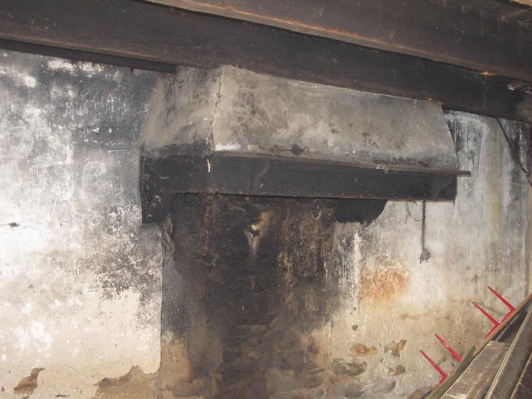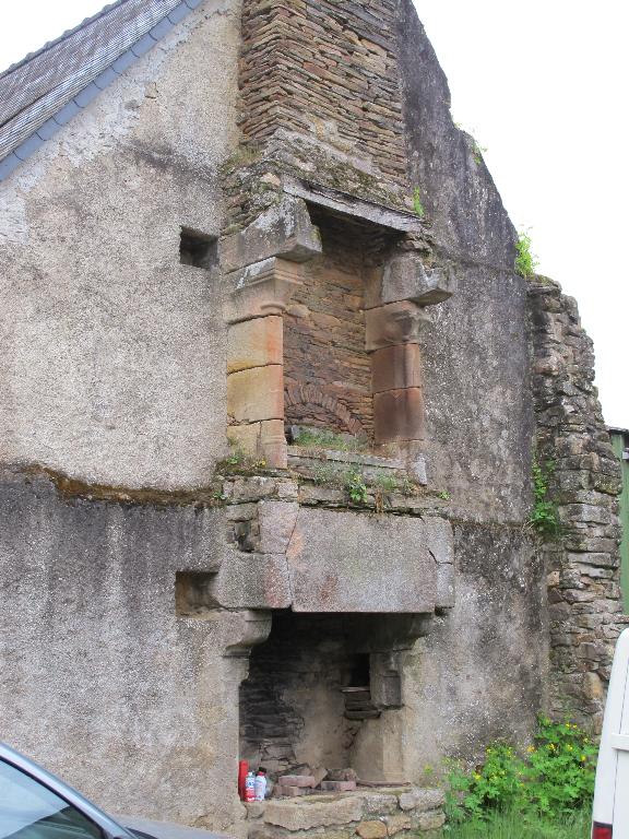 Les cheminées en pierre sont réservées aux logis les plus anciens (Le Beauchat, le Bourg, chez Filleul), leur linteau étant indifféremment constitué d’un monolithe de schiste (Le Beauchat) ou de granite (chez Filleul, dont on soulignera la qualité de la remarquable cheminée d’étage qui n’a rien à envier, sauf dans ses dimensions, à celle d’un manoir, fig.). Il est intéressant de souligner la proximité de mise en œuvre existant entre la cheminée de granite de la Croix Mariée (ferme étudiée) et les cheminées de schiste : sur l’ensemble du territoire, les sommiers qui soutiennent le linteau, saillant à travers le mur, sont découpés à la base en un quart de rond forment une sorte de corbeau (Le Beauchat, maison repérée, fig.). Si cette habitude vient pour le schiste de la difficulté à le tailler, il s’agit nettement à la Croix Mariée d’une contamination du modèle. Cependant, à cette période (19e siècle), la plupart des cheminées n’ont plus de linteau de pierre, mais un faux-manteau de bois (La Prée, maison recensée, fig., Brécéhan, maison étudiée).