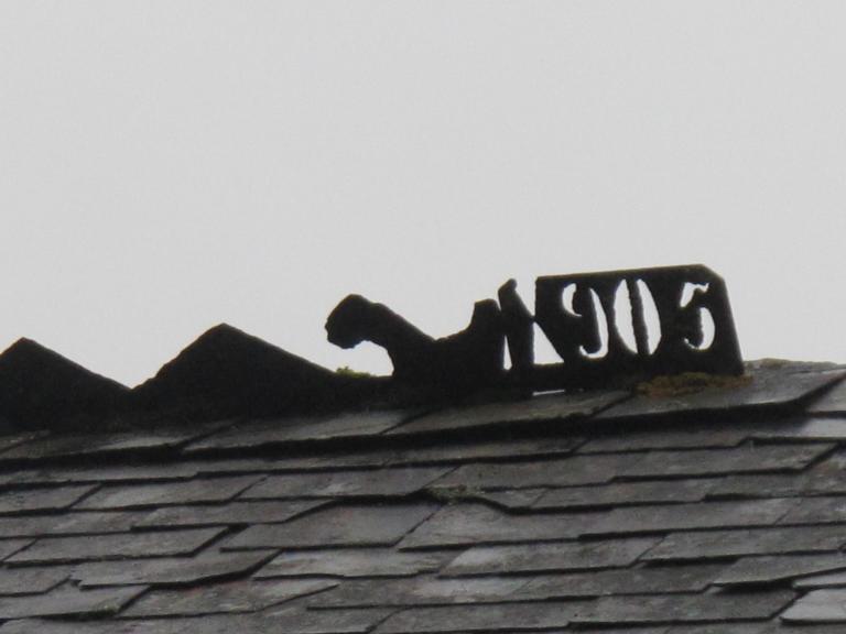 Enfin, et plus naturellement, le schiste ardoisier est le matériau majoritaire des couvertures ; cependant les toitures anciennes d’ardoise, traditionnellement ornée d’un lignolet sont rares (La Gérillais, La Foy, 1905, fig), et parfois heureusement restitué dans l’ancienne ferme de marouaud de la Prée nord (fig.). La tôle (la Chênaie, fig.), matériau de remplacement de la toiture d’origine) remplace-t-elle dans des édifices modestes du chaume ? Aucun vestige de ce matériau, même sur des dépendances, n’est venu le confirmer. Cependant, au lieu-dit Chez Filleul, une maison en ruines a conservé une cheminée d’étage en granite dont la teinte rouge montre qu’il a subi le feu : se peut-il que cette maison ait été anciennement couverte de chaume ?