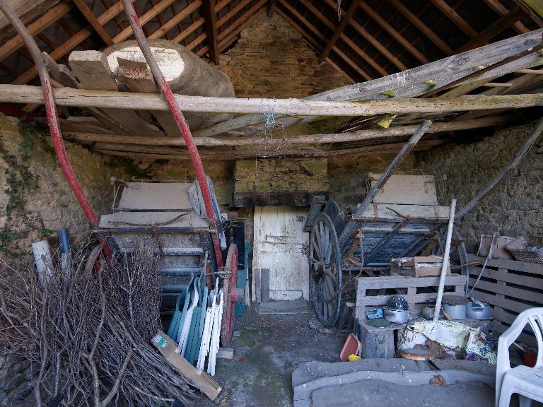 Ce plan se rapproche du logis mixte, dont un seul exemple a été étudié à Saint-Gravé, à la ferme du Pichorel, avec sa délimitation marquée par une différence de niveau entre la salle et l’étable. Ce type si fréquent dans l’ouest de la Bretagne a été peu rencontré à Saint-Gravé, soit parce qu’il s’agit d’un habitat tardif, soit en raison de la modestie des fermes, les bêtes étant alors abritées dans l’appentis postérieur ou dans un local indépendant.
