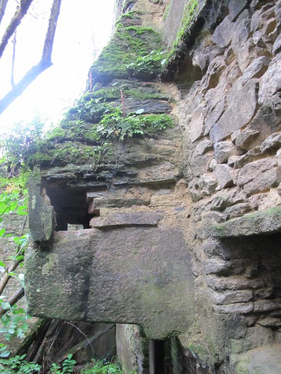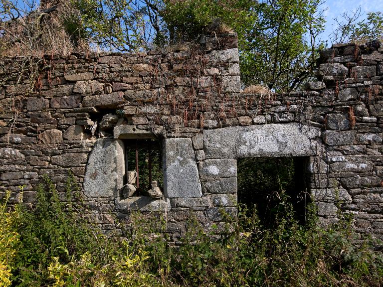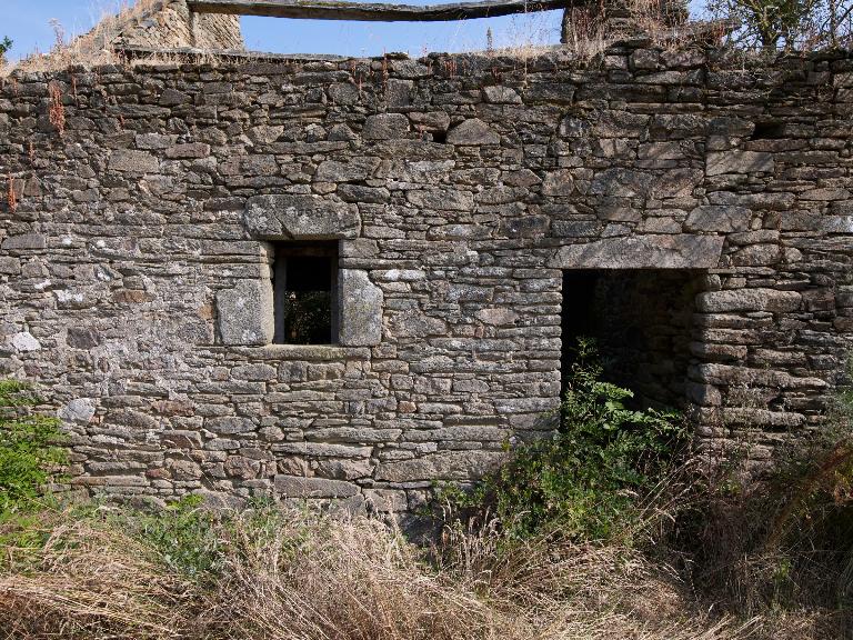 On notera d’autre part l’utilisation du schiste pour toutes les pierres longues et peu épaisses, cheminée de la salle, placards muraux, alors que le sous-sol est ici granitique ce dont témoignent les ouvertures. La gradation d’importance entre les deux logis est donnée par les ouvertures, plus soignées à l’est qu’à l’ouest. On peut se demander cependant comment fonctionnaient ces deux pièces, probablement, deux salles pour deux foyers dans une seule petite ferme. (C. Toscer)