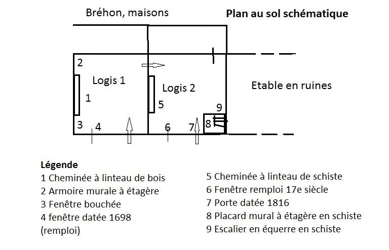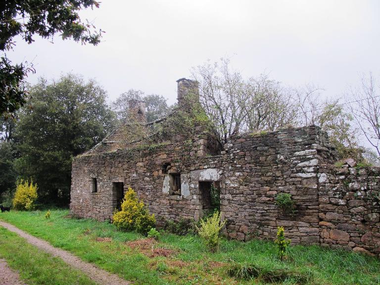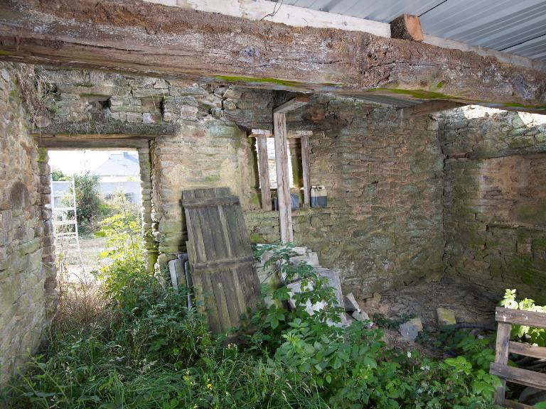 Malgré l’état de ruine avancée, cette maison a été conservée en étude en raison de la présence de la demi-cloison étagère qui dissimule et supporte l’escalier dans la pièce principale. Ce dispositif de placard cloison en schiste existe dans la haute vallée du Blavet, mais il sert à isoler l’entrée de la salle, comme l’armoire-meuble dans d’autres régions proches du Morbihan ouest. C’est la seconde fois que ce système est rencontré, un autre exemple presque identique et mieux conservé a été rencontré au Gachot en Pluherlin, maison plus riche.