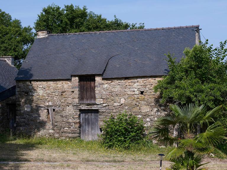 La ferme fait partie d’un grand alignement regroupant plusieurs logis de hauteurs de faîtage différentes, au sein duquel émerge le logis de plan massé à étage, encadré d’une grange à l’est et d’un logis à l’ouest. En retour au sud, mais isolés, deux dépendances dont l’une comprend un four sont aujourd’hui reliées par un appentis.