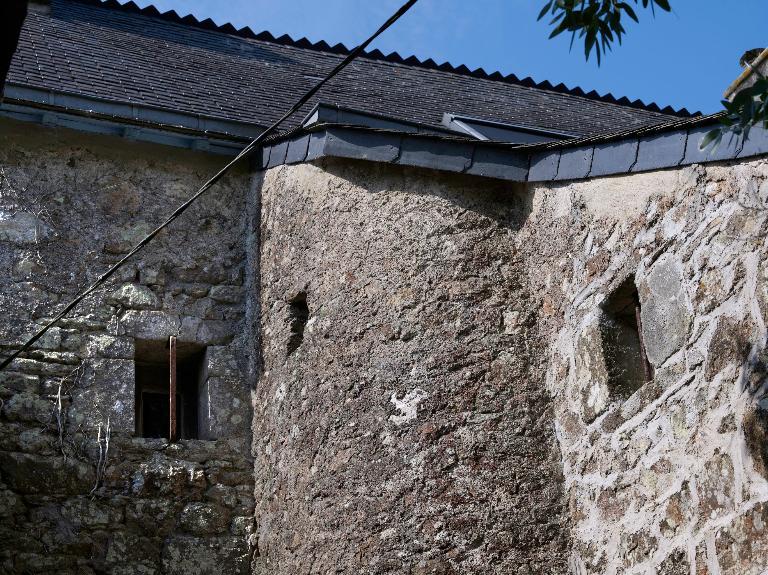 Le logis est construit en moellon de granite enduit en façade. Le corps principal de plan massé à une pièce par étage est doublé d’un appentis postérieur un peu moins long, avec le corps de latrines saillant en quart hors-œuvre dans l’angle nord-est du logis et de l’appentis.