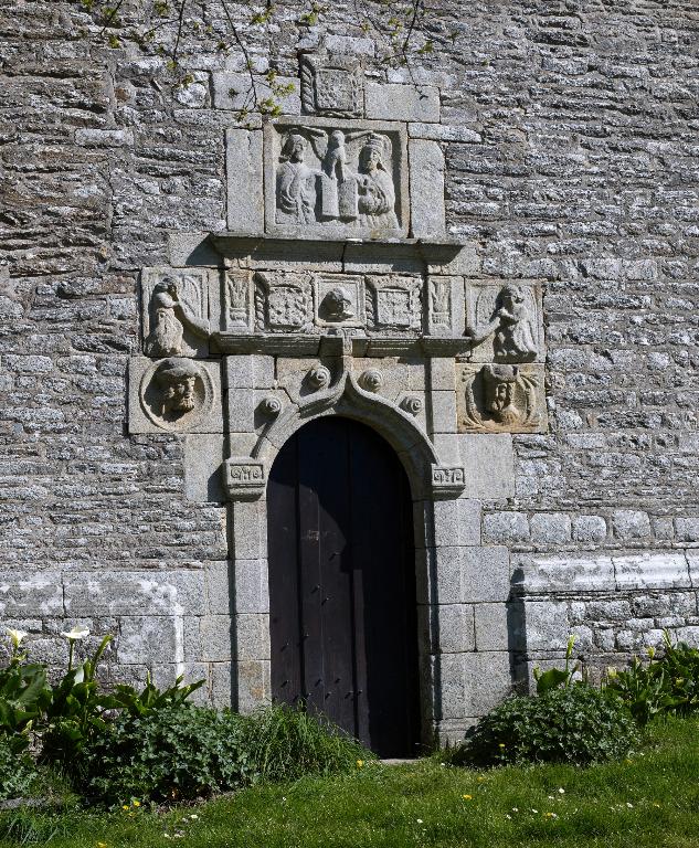 Modeste par ses dimensions, la chapelle Saint-Sixte, initialement dédiée à la Trinité, est connue par le remarquable décor d’époque Renaissance ornant sa porte sud, entrée privilégiée comme souvent dans les édifices religieux bretons. Le décor alterne sujets figurés et blasons : la Trinité encadrant les tables de la Loi, anges musiciens, portraits en médaillons dont au centre, une tête enturbannée et moustachue dans l’esprit des décors de l’époque.
