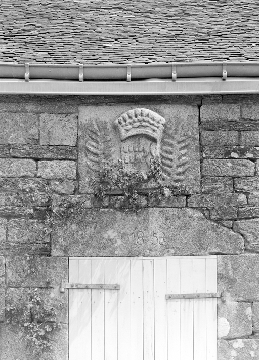 Maison construite en 1858 ; remploi d'une pierre armoriée.