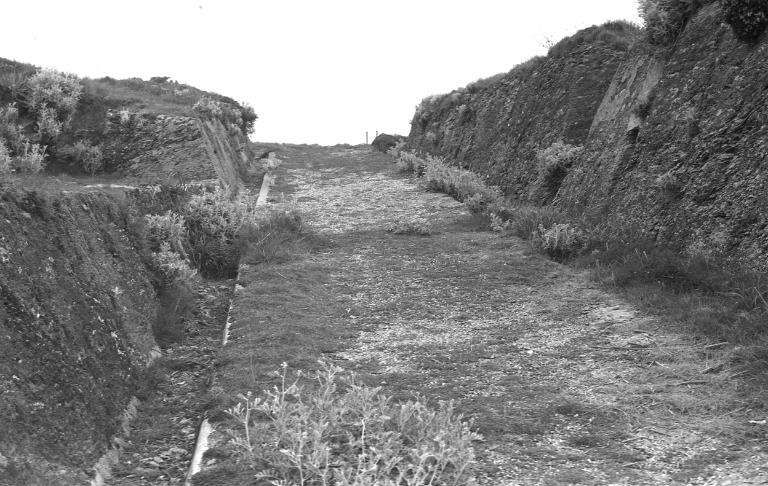 L'exécution de ces derniers travaux, déjà en partie terminés, permet de modifier le système de défense adopté jusqu'à ce jour pour Belle Ile. On conçoit, en effet, que lorsque le réduit de l'Ile n'offrait pas à la défense un appui solide, et un centre d'où les retours offensifs pussent rayonner, on ait multiplié les retranchements à la circonférence, élevé de nombreuses batteries, et fermé les ravins par des coupures (plusieurs des criques de débarquement sont fermées par des parapets de 4 mètres environ d'escarpe, reliés aux deux côtes de la crique. Quand la gorge n'est pas par elle même fort étroite et abrupte, cette fermeture n'est plus un obstacle pour l'ennemi ; elle lui permet même de venir sous son abri, se masser pour escalader ensuite la position. On ne saurait sans imprudence garnir des parapets d'un aussi mince relief de défenseurs qui, exposés à être enlevés de front ou coupés, ne pourront tenir ferme contre l'ennemi débarqué ; et puisque ces retranchements ne peuvent et ne doivent même pas être défendus énergiquement, mieux vaudrait une plage unie battue à bonne portée par la mousqueterie & la mitraille d'un réduit). Il fallait alors à tout prix empêcher un débarquement : aujourd'hui les conditions de l'attaque et de la défense sont changées.