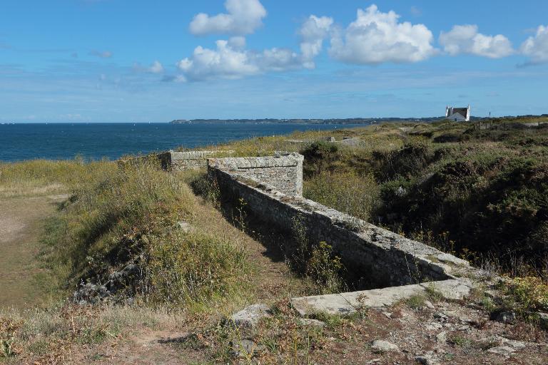 2°, Douze de la pointe de Kéréso à la pointe aux Poulains, c'est à dire, du côté de la mer sauvage ; leur seule destination était de battre au large, car elles étaient dans des positions trop élevées pour pouvoir défendre les petites anses, peu accessibles du reste, près desquelles elles ont été construites.