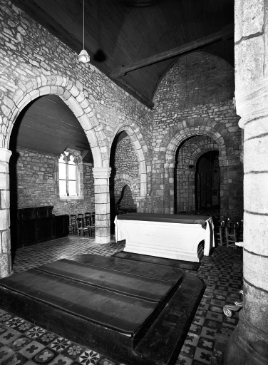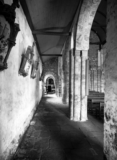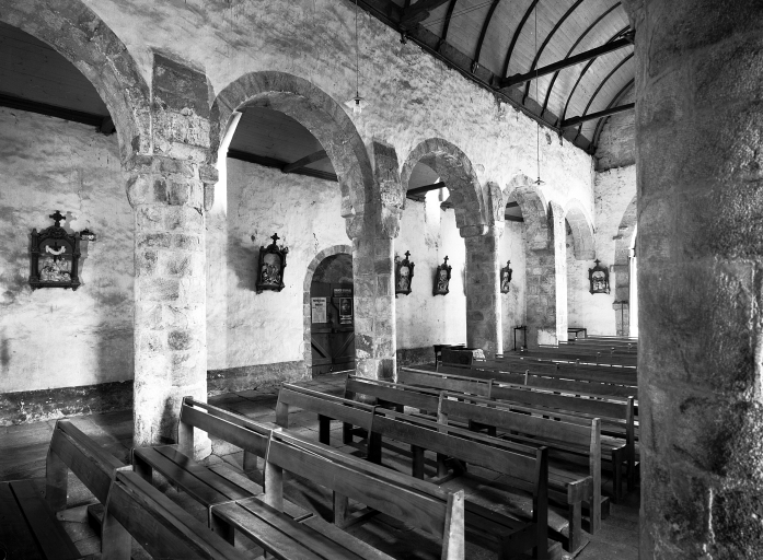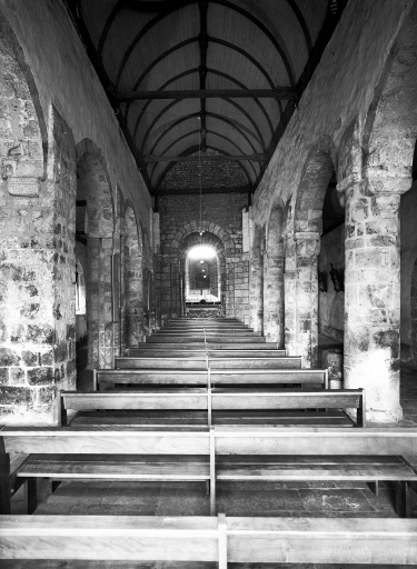 Nef, croisée de transept et mur nord du choeur construits aux 11e et 12e siècles ; bras de transept 13e siècle ? ; remaniements importants au 15e siècle, galerie extérieure sud 15e siècle, choeur reconstruit au 15e siècle ; charpente et sablières construites en 1465 ; portail occidental reconstruit au 19e siècle ; blason du 15e siècle non identifié.