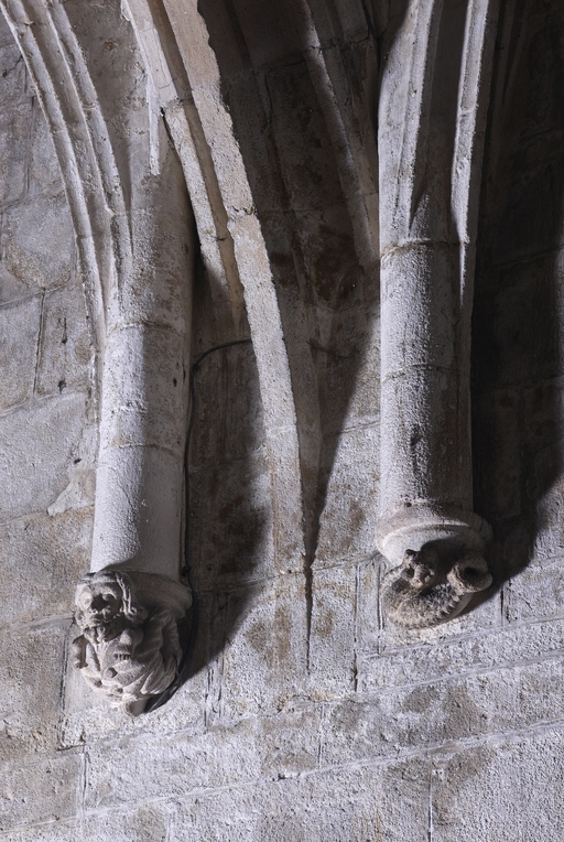 Les grandes arcades ne montent qu'à mi hauteur des murs gouttereaux de la nef, au même niveau que les fenêtres des collatéraux, laissant au dessus de leurs écoinçons une importante partie de mur qui crée un effet de tunnel. Dans les collatéraux, des arcs diaphragmes qui descendent bien en dessous des clefs de voûtes contribuent au contrebutement de cette nef en remplissant le rôle d'arcs-boutants intérieurs. Loin d'être une maladresse, l'opposition entre cette nef de proportions écrasées, relativement sombre - dont la pénombre est accentuée par les vitraux actuels du XIXe et XXe siècle - et un chœur élancé et lumineux, semble résulter d'une recherche formelle qui vise à magnifier et mettre en scène le sanctuaire.