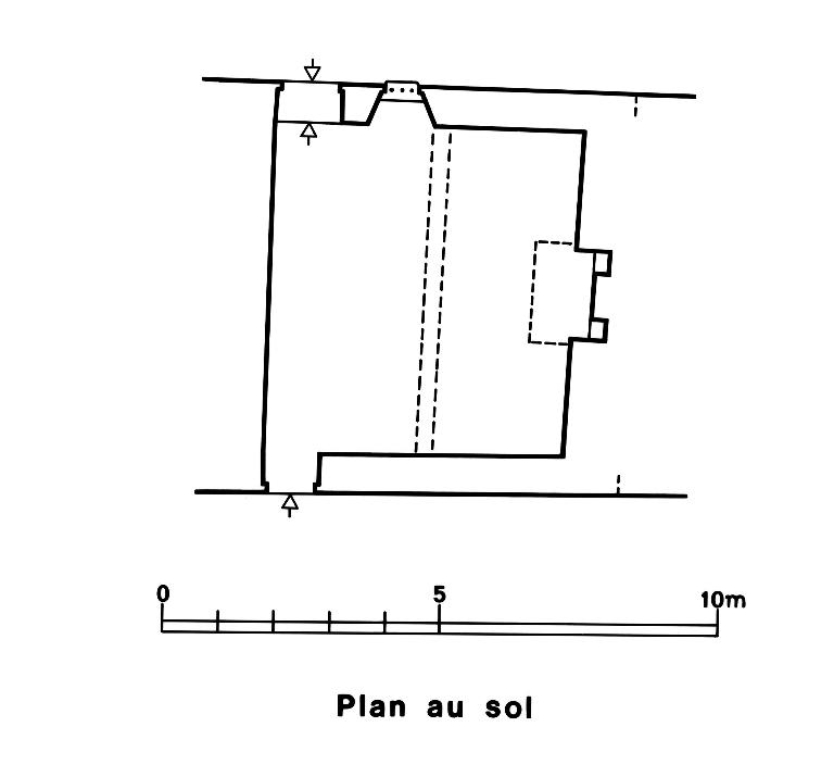 De nombreuses maisons appartenant aux différents types possèdent en façade postérieure une porte supplémentaire, parfois murée. Son usage exact n’est pas précisément connu ; une des raisons pour expliquer sa présence est la tendance à l’alignement que nous avons signalée en début de cette étude ; en fait la porte nord se trouve aussi sur des maisons indépendantes et sans doute faut-il y voir simplement une commodité d’accès derrière la maison vers les champs ou les courtils qui pouvaient s’y trouver. Assez souvent, la porte nord est placée vis-à-vis de la porte d’entrée sud, déterminant formellement une sorte de couloir ou passage direct à travers la maison entre la cour au sud et l’ornière de la maison : c’est le « cross-passage » mentionné par Meirion-Jones en référence avec des types britanniques. Il n’est pas certain que cette notion de couloir transversal, même sommairement matérialisé, soit justifié dans nos régions. Dans le cas de logis à fonctions multiples, avec salle et étable, on attendrait des portes décalées plutôt qu’en vis-à-vis.
