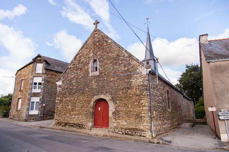 Suite aux nombreux remaniements de ces trois derniers siècles, l’église du Temple de Carentoir n’a conservé que peu de vestiges antérieurs au XVIIe siècle. C’est un édifice à nef unique ouvert à l’ouest d’un portail moderne en plein-cintre simplement chanfreiné. Le vaisseau unique est éclairé par une série de deux fenêtres au nord et au sud. Une porte en plein-cintre permet l’accès à la nef par le gouttereau sud, tandis que les traces de l’ancienne porte à linteau droit monoxyle offrant accès au chœur se devine encore au niveau du gouttereau nord. Derrière la sacristie, à l'est, une croix palis monolithe semble indiqué l'ancien cimetière paroissial. C'est une croix en schiste, tréflée et en son centre cinq trous figurent les plaies du Christ. À l’intérieur, la nef est presqu’entièrement chaulée, seule la seconde fenêtre du gouttereau sud à l’est n’a pas été badigeonnée. Ses piédroits sont soulignés d’une fine colonnette rainurée et les traces d’une peinture murale sont encore perceptibles, bien que dans un état fragmentaire. Dans le chœur, un enfeu grossièrement taillé abritait un gisant monoxyle qui prend actuellement place dans un coffre transparent permettant sa conservation. Ce gisant représente un homme en position allongée, les mains jointes, vêtu d’une longue cotte s’arrêtant au tibia et dont les détails des drapés sont remarquables. Sa tête repose sur un coussin, sa coiffure est mi-longue et terminée par des boucles, ses yeux sont ouverts et il porte une fine moustache. Il arbore une épée et son baudrier, tous deux soutenus par une fine ceinture. Le style de ce gisant indique clairement une facture du milieu du XIIIe siècle, il s’agit très probablement d’un noble local ayant fait le souhait d’être inhumé dans l’église du Temple en échange de prières nominales pour le salut de son âme.