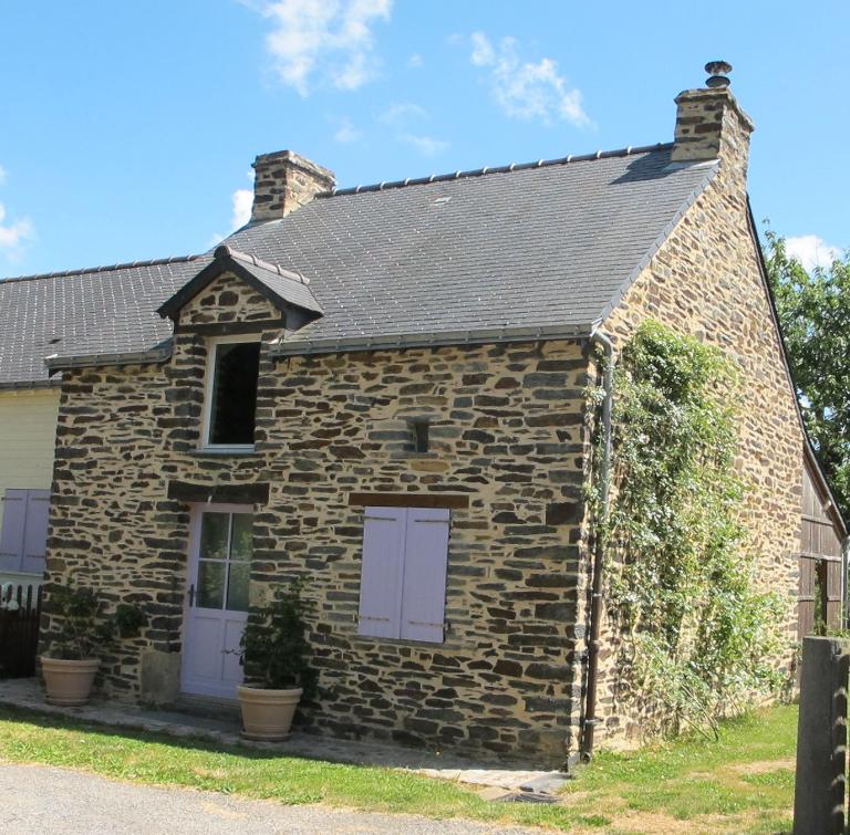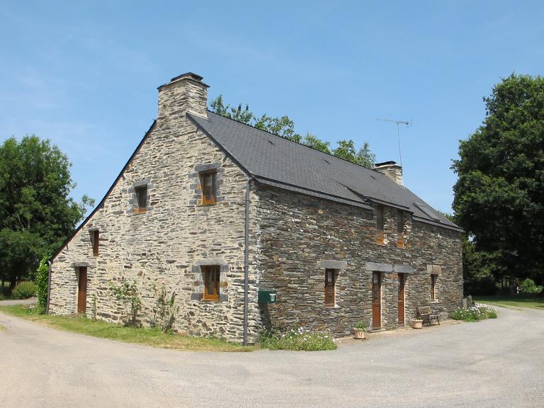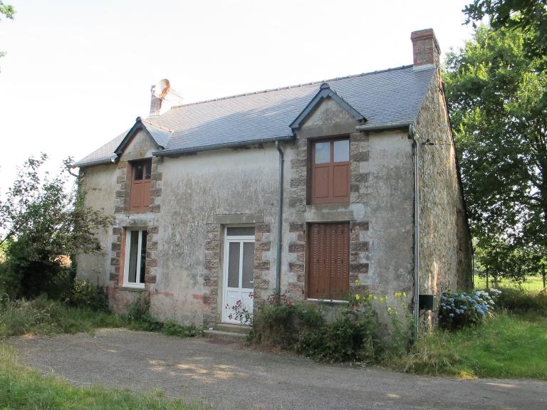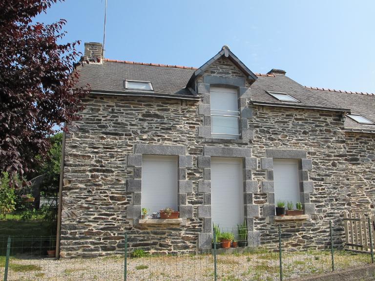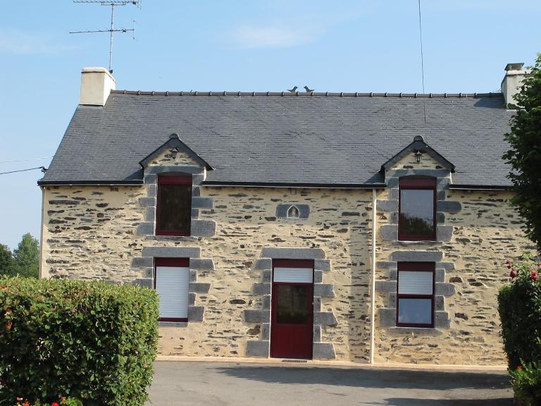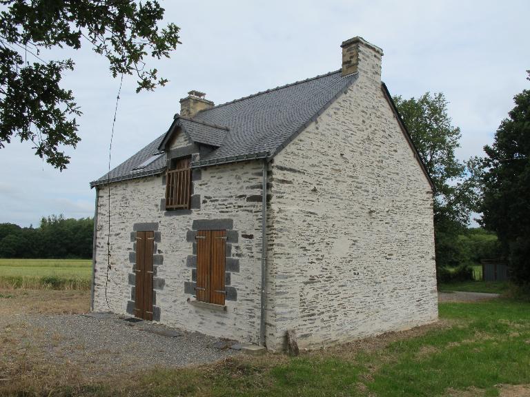 Logis de plan allongé à deux pièces symétriques ; rez-de-chaussée surmonté d’un comble à surcroît à lucarne passante ; encadrements des baies en pierre de taille de granite provenant d’une carrière de Bains-sur-Oust (renseignement oral) ; porte et fenêtre droite inversées.