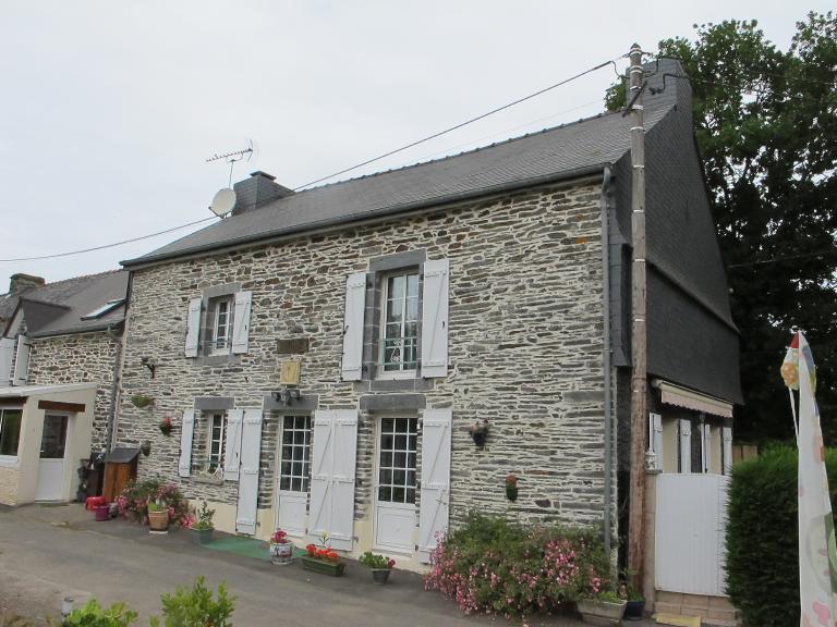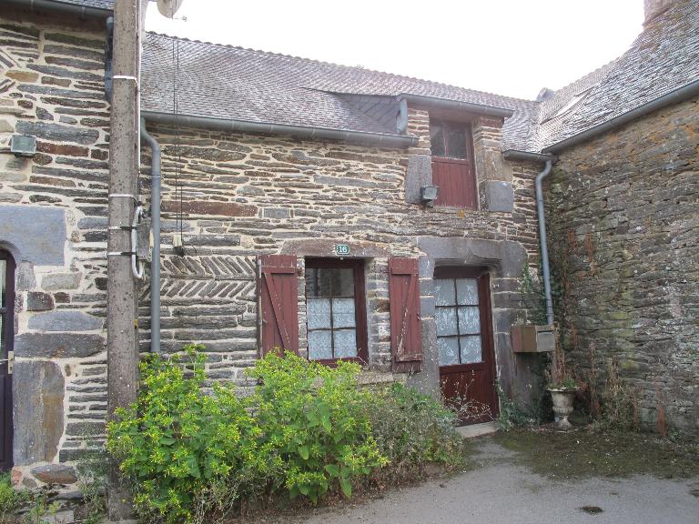Maison à deux pièces ou plus par niveau, orientée à l’ouest ; rez-de-chaussée surmonté d’un étage à deux fenêtres formant travées avec les baies inférieures ; les baies ont toutes été agrandies sauf la porte en plein cintre moulurée ; encadrements des baies et chaînes d’angles alternées en schiste ; cheminée en schiste sur le mur-pignon sud.