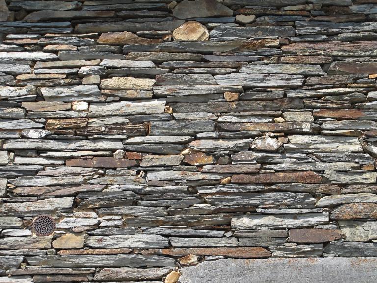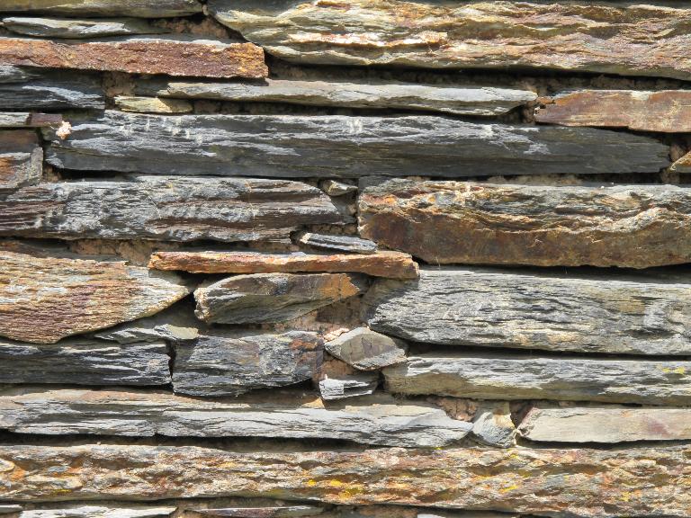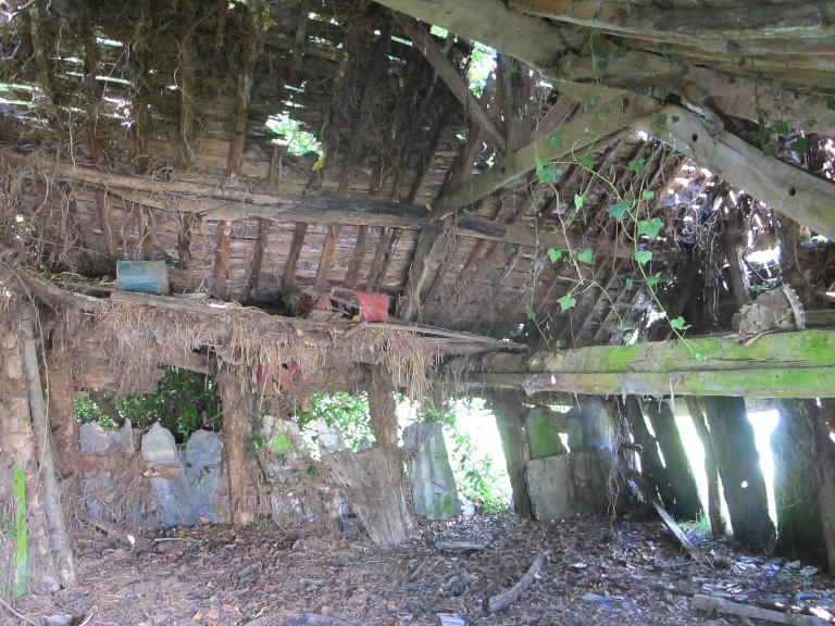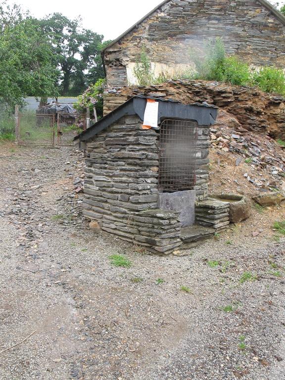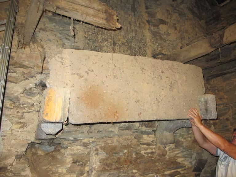 Maison à pièce unique ; cheminée en schiste ; en ruine.