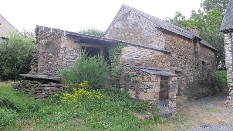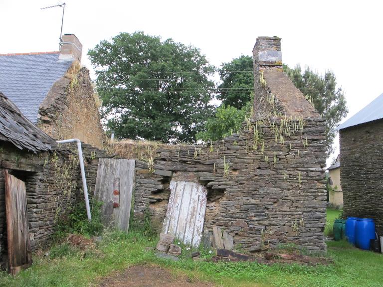 Ancien logis-étable à deux portes, orienté est-ouest ; murs en moellons de schiste, linteaux de bois, appuis des fenêtres en plaque de schiste ; au-dessus de la fenêtre du logis grande croix en enduit ; cheminée en bois ; ajout d’une nouvelle étable dans les mêmes matériaux, à une date indéterminée du 19e siècle, puis d’une soue à trois loges, perpendiculaire à la seconde étable ; dans la cour, puits couvert en dalles de schiste.