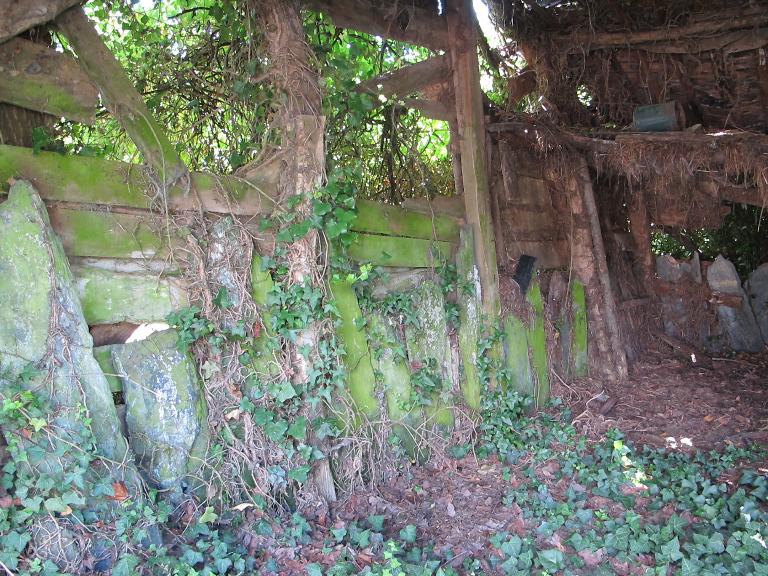 Logis à pièce unique (?) ; cheminée en schiste ; deux niches murales ; en ruine.