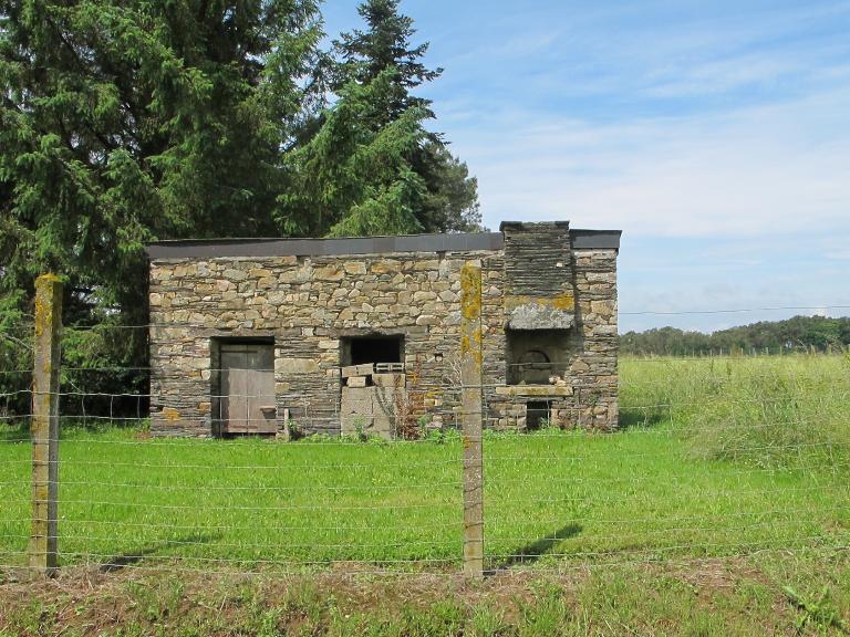 Maison à pièce unique ; appareillage des murs à carreaux et boutisses ; cheminée en schiste ; à l'ouest, un bûcher ; en ruine.