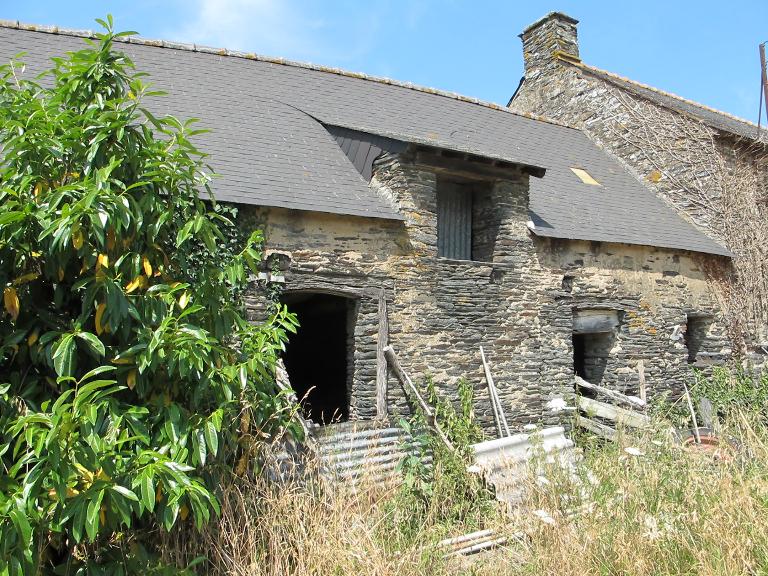 Logis-étable à deux portes ; logis à une pièce ; rez-de-chaussée surmonté d’un comble à surcroît à deux lucarnes passantes formant travées avec les portes ; coyau ; linteaux en bois, piédroits des baies en moellons de schiste chaulés ; soue en prolongement à l’est. Étable en retour à l’est, avec petit jour sur le mur ouest dont le linteau porte la date 1740 ; les deux portes sont ouvertes sur le mur est ; à l’intérieur, une petite cheminée incorporée dans le mur servait à la préparation de la nourriture des bêtes ; à la lecture du cadastre de 1824, cette étable dépendait de la ferme 2 ; cependant, les portes donnant sur l’espace devant la maison 3 et son état actuel, en ruine, posent question.