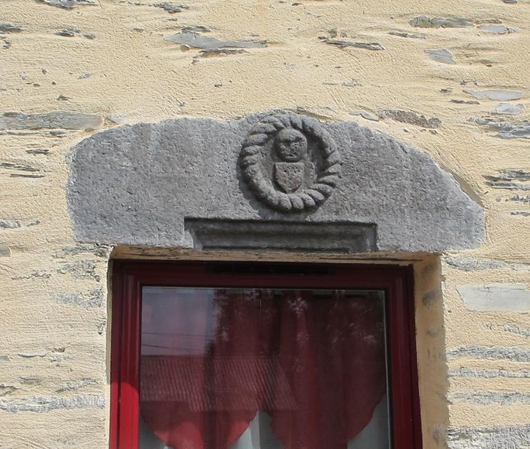 Maison de plan allongé, aujourd’hui divisée en deux logis ; rez-de-chaussée surmonté d’un étage carré accessible par un escalier dans une tour demi-hors œuvre postérieure ; linteaux en schiste ; remploi du linteau d’une petite fenêtre, à décor en bas relief : tête et écu muet dans une cordelière.