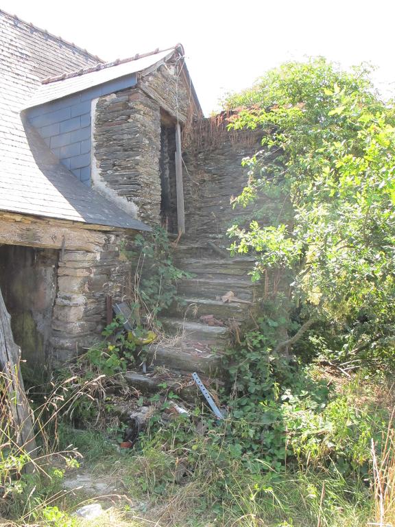 Logis à pièce unique orienté à l’est ; rez-de-chaussée surmonté d’un comble à surcroît à lucarne rampante formant travée avec la fenêtre ; piédroits des baies en moellons de schiste, linteau commun en bois de la porte et de la fenêtre ; cheminée en schiste ; sol en terre battue ; logis prolongé par une étable surmontée d’un grenier autrefois couvert en chaume.