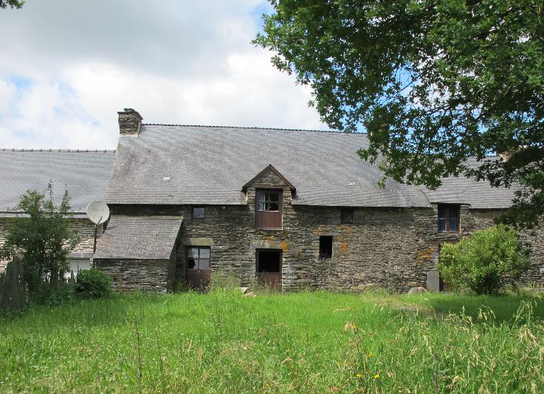 Maison de plan allongé de type ternaire construite en 1899 ; façade principale orientée au sud précédée d’une cour sur laquelle donne une grange ; murs en moellons de schiste enduits, corniche en quart de rond et encadrement des baies en pierre de taille de granite calibrées ; étage carré éclairé par trois fenêtres forment travée avec les baies inférieures ; au-dessus de la porte centrale, une lucarne en granite à fronton triangulaire gravé de la date 1899 ; l’appentis postérieur est plus tardif.