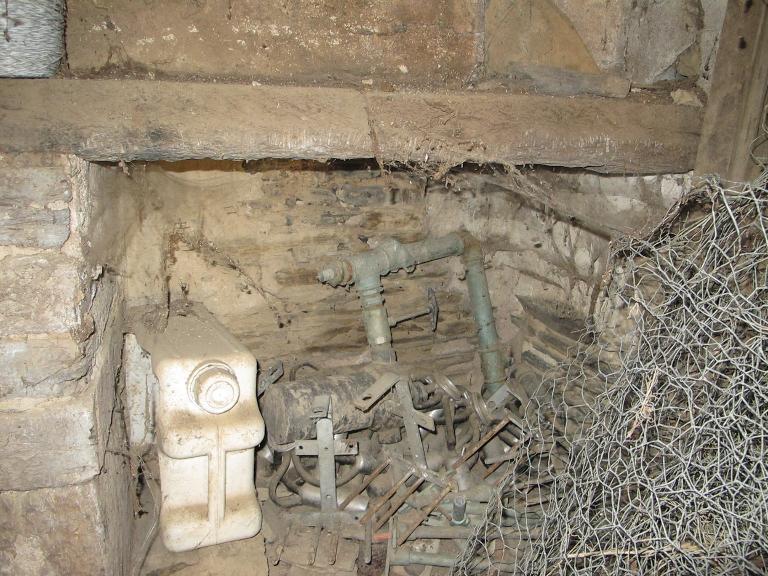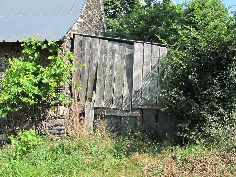 Au sud, petite dépendance constituée de deux celliers au rez-de-chaussée ; dans l’un, une armoire murale, dans l’autre, face à la porte, une petite cheminée (19e siècle ?) incorporée dans le mur gouttereau sud près d’une fenêtre ; on accède au comble à surcroît par un escalier extérieur en dalles de schiste ; coyau. Puits et four à pain précédé d'un fournil.