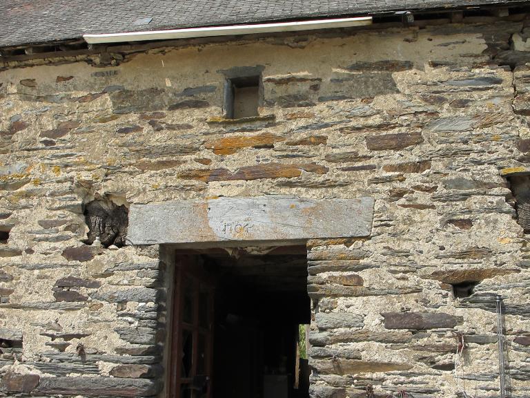 Logis-étable à deux portes ; rez-de-chaussée surmonté d’un haut surcroît à lucarne rampante formant travée avec la porte du logis ; piédroits des baies en moellons de schiste, linteaux en bois, sauf celui de la porte, en schiste, appuis en dalle de schiste. La cheminée en schiste est encadrée de deux niches ; piédroits et consoles chanfreinés, ces dernières ressortant très longuement du mur-pignon ouest.