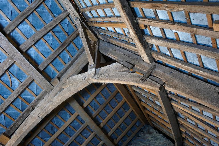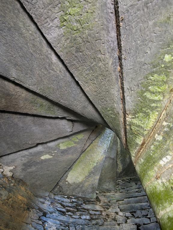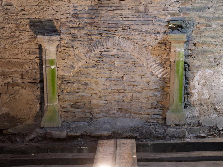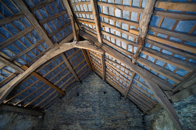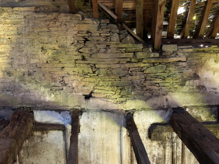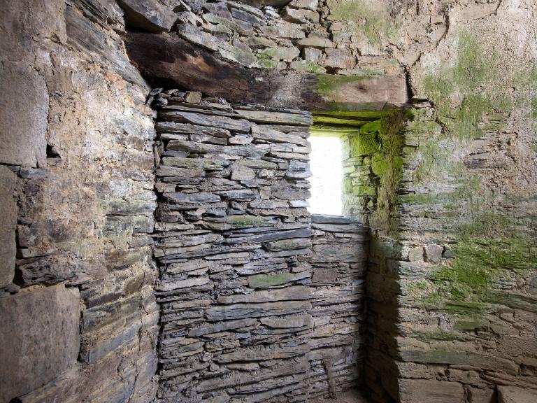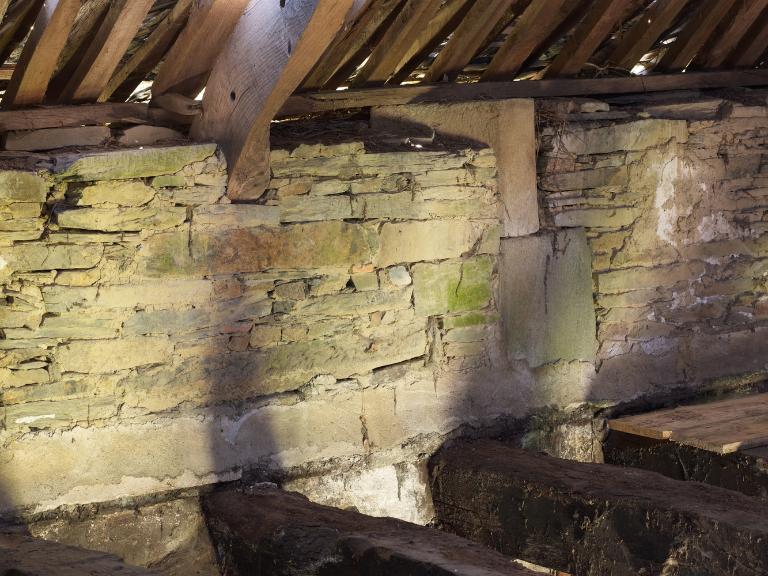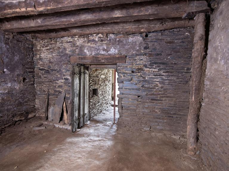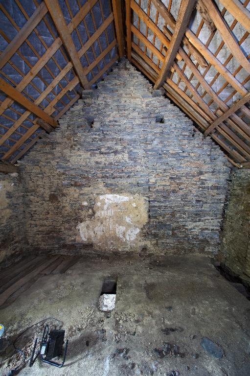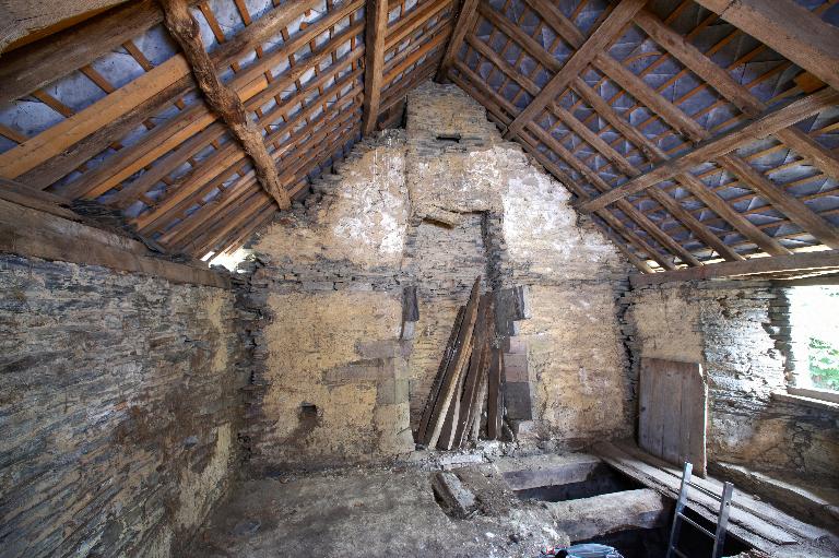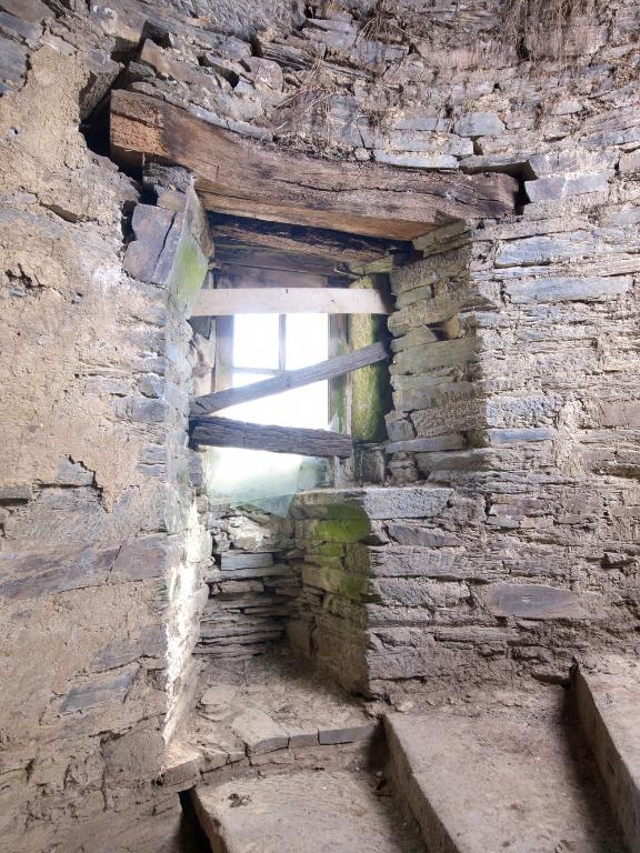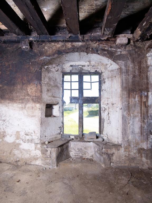 L’étage comprenait plusieurs chambres : avec l’abaissement du toit, celles du corps principal ne sont plus que vestiges, mais les portes jumelées sur le palier de l’escalier montrent la division de l’espace en deux chambres dont on devine les coussièges de trois fenêtres. De la large cheminée sur le mur-pignon nord - si elle a été terminée -, ne subsistent que les piédroits adossés.