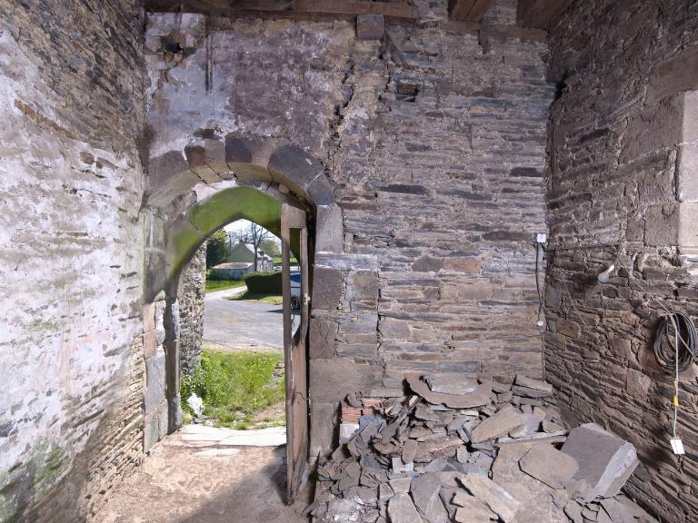 Le plan d'origine, en T renversé, est fréquent dans les manoirs du 15e siècle. Par la porte d’entrée, on pénètre dans une vaste salle, divisée au cours du 18e siècle. De cette salle éclairée par une unique grande fenêtre à croisée garnie de coussièges, on accède à la tour d’escalier par une porte dont le linteau repose sur des coussinets, dans la tradition du 15e siècle. Une cheminée monumentale orne le mur-pignon nord de la salle : à sa gauche, une porte obturée débouchait dans la partie disparue, sans doute la cuisine. L’aile en retour, à l’ouest, abrite le cellier, aéré d’un simple jour comme il convient à un cellier et accessible lui aussi par une porte du modèle que celle de l'escalier.