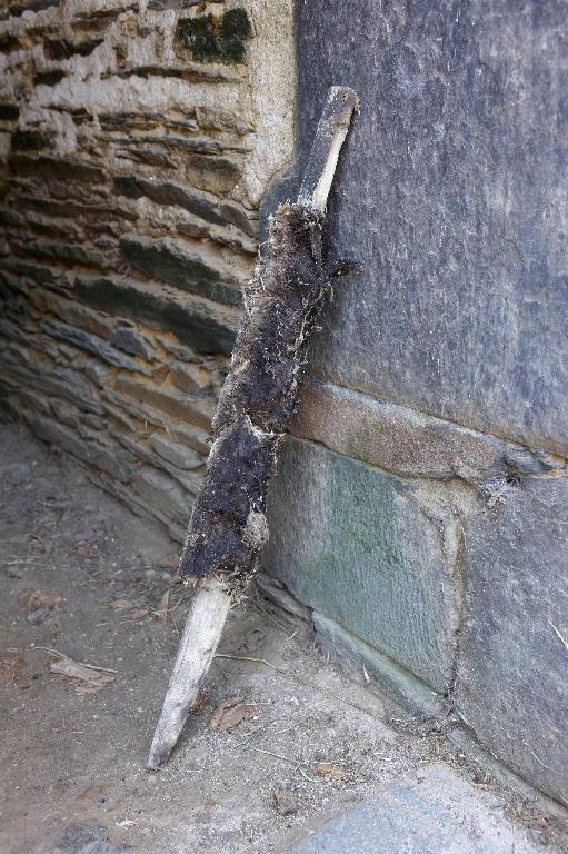 Le manoir est construit en « pierre du pays », un très beau schiste gris bleu dont les qualités plastiques indéniables alliées au savoir-faire des maîtres maçons ont favorisé la confection de blocs en pierre de taille spectaculaires, tels que le linteau de la cheminée de la salle, les marches portant-noyau de l’escalier ou l’arc de la porte d’entrée.